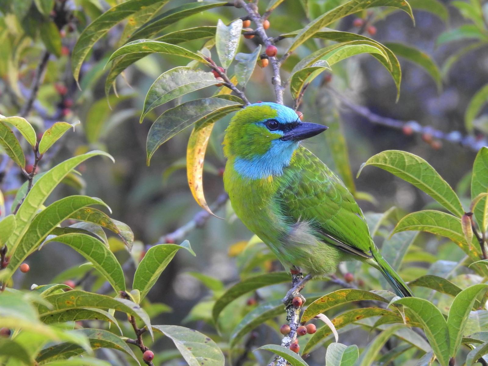 On Mt. Kinabalu we will likely encounter several mixed species flocks and these usually come in two varieties. Those dominated by laughingthrushes (Chestnut-hooded, Sunda and if we’re lucky Bare-headed) can also attract other larger birds such as the stunning Bornean Green Magpie, Black-and-crimson Oriole, Sunda Cuckooshrike and Checker-throated Woodpecker. The other type of mixed flock usually consists of smaller birds such as Chestnut-crowned Yuhina, Yellow-breasted and Mountain leaf warblers and White-throated Fantails. In these flocks one can often find White-browed (Blyth’s) Shrike-babbler, Bornean Whistler, Indigo Flycatcher and Temmink’s Sunbird.