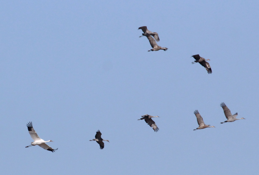 Day 2 - Today, our first full day in Saskatchewan, we'll travel east of Saskatoon to an area where Whooping Cranes are often found. Even if we don't find the 'big white birds', there will still be plenty of other goodies to look at including massive flocks of Snow Geese, with the other 4 goose species mixed in, as well as impressive numbers of Sandhill Cranes. Wetlands in this area hold many species of ducks and passerines could include Harris's Sparrows and Rusty Blackbirds. Night in Saskatoon.